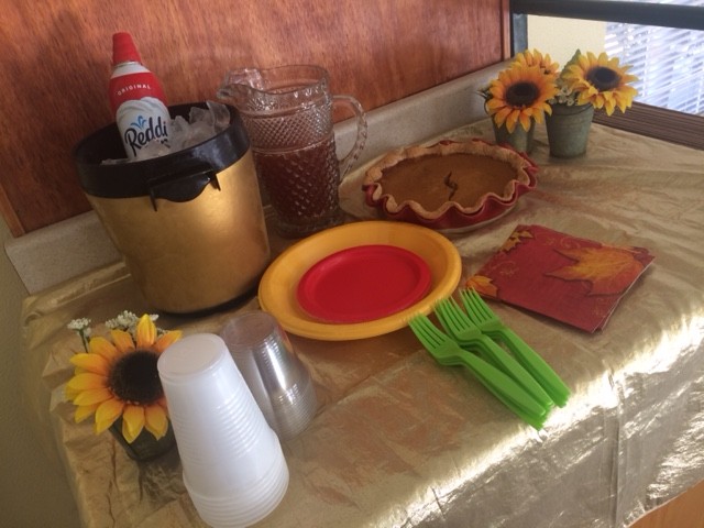 “Our customers are greatly appreciated and we love to bake and wanted to share the love. Also, we made extra pumpkin pies for any customer that really loved the pumpkin pie and wanted to share (or not share) at home or work,” they said. “We had a fall-inspired apple cider, pomegranate punch, and whipped topping on ice to top it all off!”